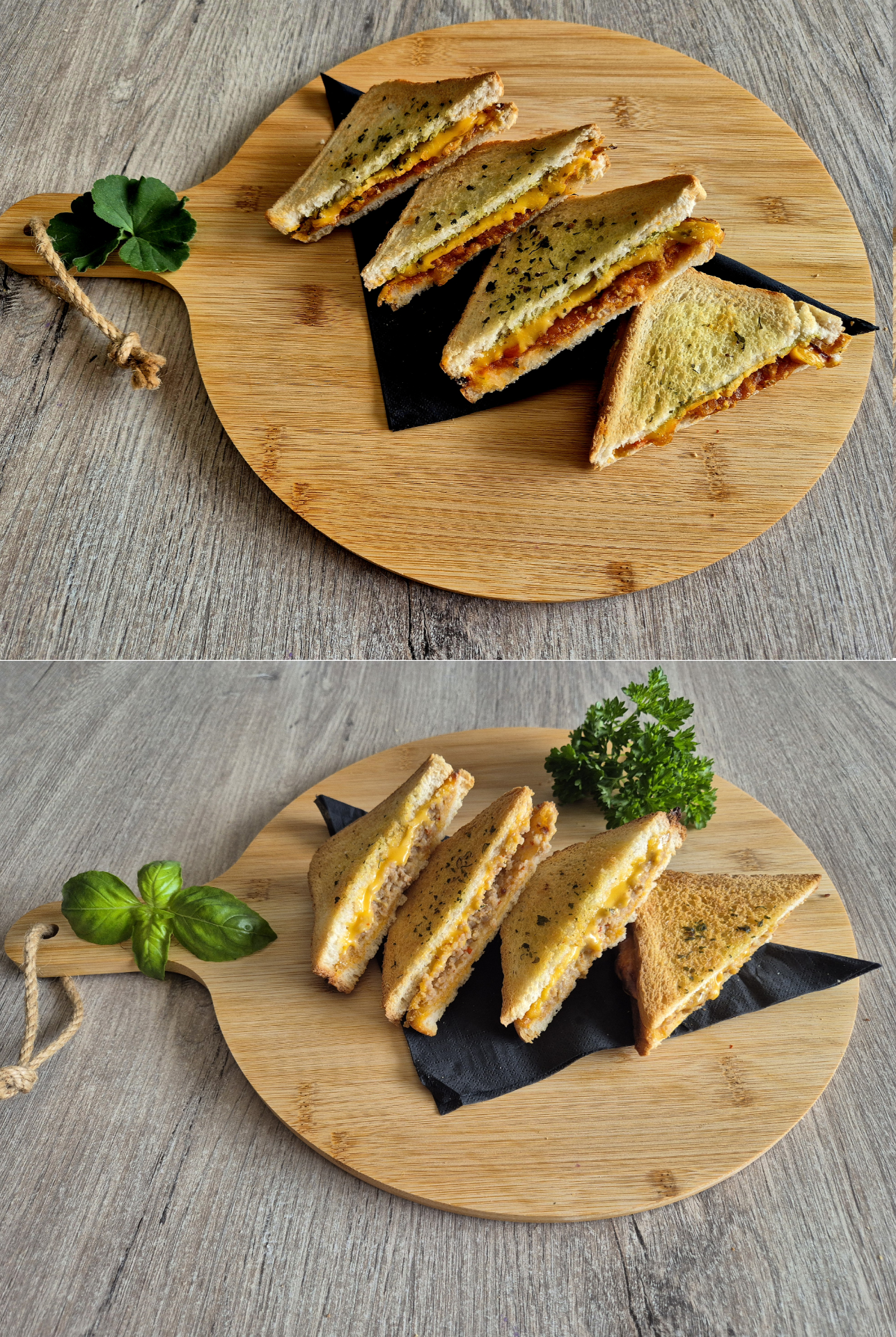Tricolore : Pesto, Bolognaisesaus en Cheddar